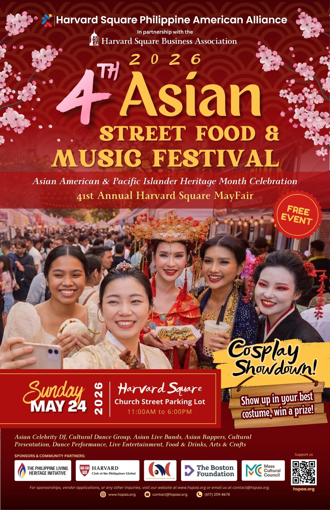 Be part of the 4th Asian Street Food and Music Festival event and let’s make an unforgettable day at Harvard Square.